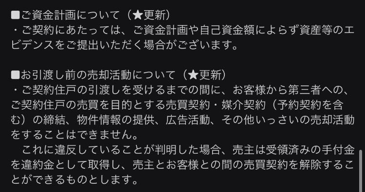 「売買契約後〜引き渡し前における転売活動を禁止」するもので、物件情報の提供や広告掲載までを含めて制限しています。