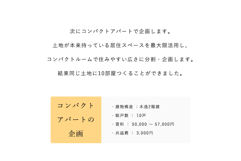 新規で入居者を一から募集するので、入居者と顔が見えるお付き合いができます。中古アパートでは入居済みのため、どのような方がどのような条件で借りたのか不明瞭です。
